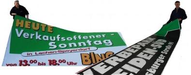 Wir fertigen Werbebanner und Fahnen für den Innenbereich, aber auch für Aussenanwendungen.